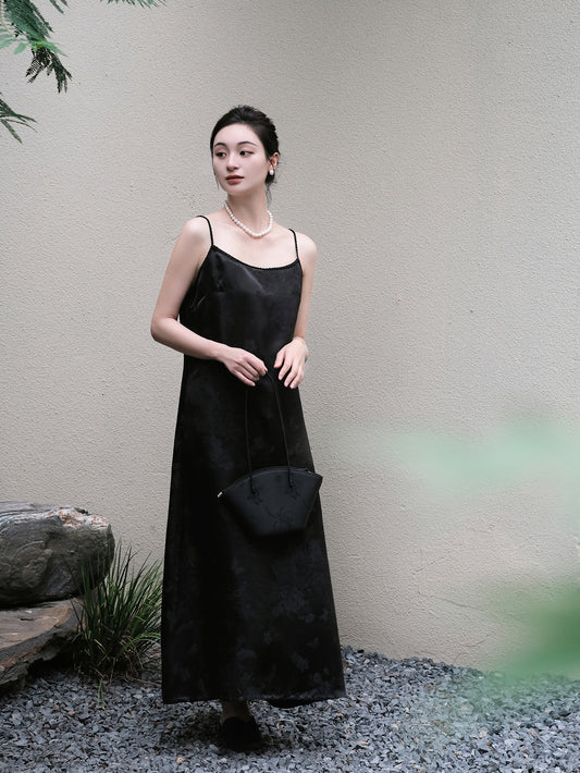 Black Bamboo Pattern Silk Jacquard Vest
