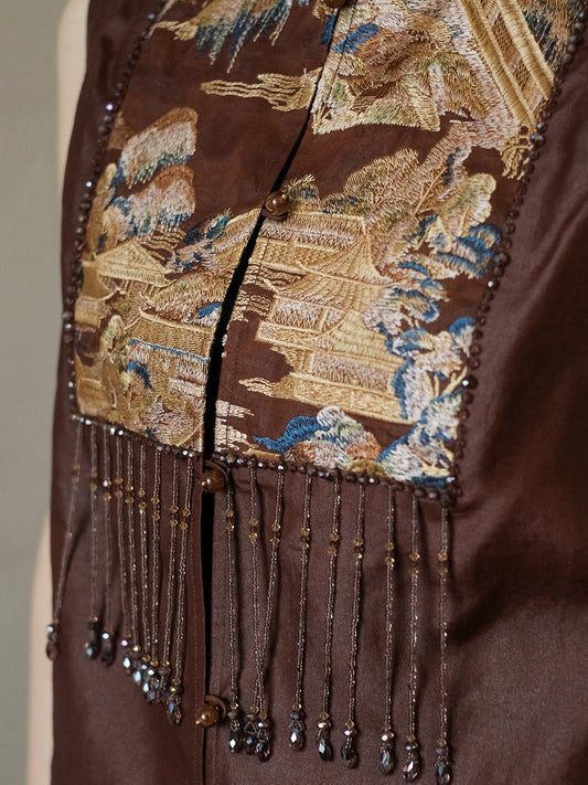 Jacquard-Patchwork Velvet Embroidery Vest X Guo Pei